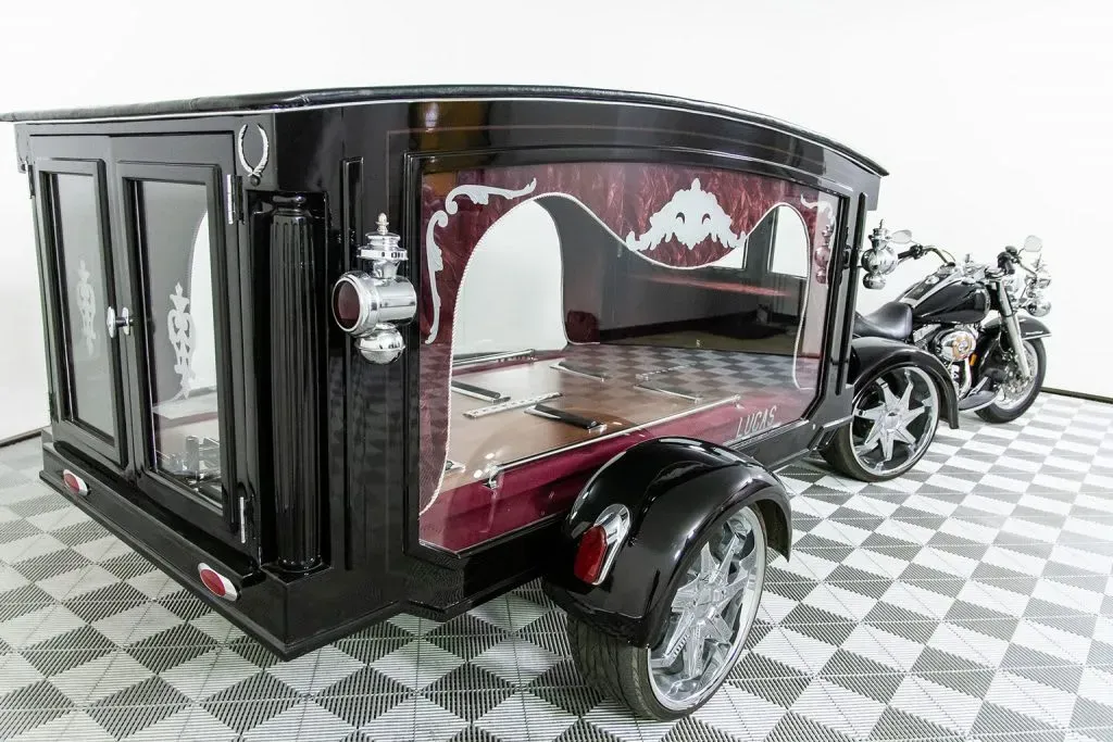 Our unique 'Last Ride DFW' provides access to our motorcycle hearse to the Dallas Fort Worth area and offers families a very unique way to celebrate the life of a loved one. This motorcycle hearse is pulled by an Anniversary Edition Harley Davidson Road King and tows a custom 5th wheel Tombstone Hearse. This motorcycle/hearse combination can easily accommodate an urn or a casket and with a glass Tombstone hearse, the casket or urn is visible on all sides. This Harley Davidson and Tombstone Hearse is a great choice for those who were motorcycle enthusiasts, police and fire professionals, veterans and anyone who would like to organize an unforgettable Last Ride.